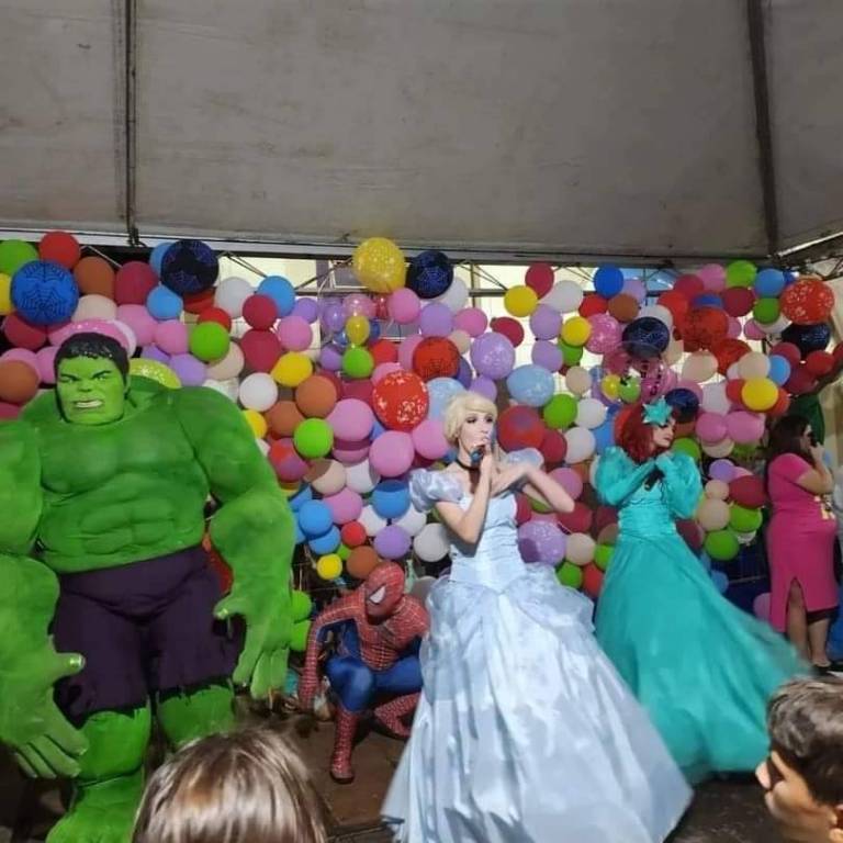 A festa foi um sucesso e teve tudo que a criançada gosta: pula-pula, tobogã, piscina de bolinha, piscina de futebol de sabão, carreta da alegria, refrigerante, cachorro quente, algodão doce, pipoca, sorvete, sacolinha surpresa, bolas, show com as princesas Cinderela e Ariel, Incrível Hulk, Mickey, Minie e Homem Aranha.