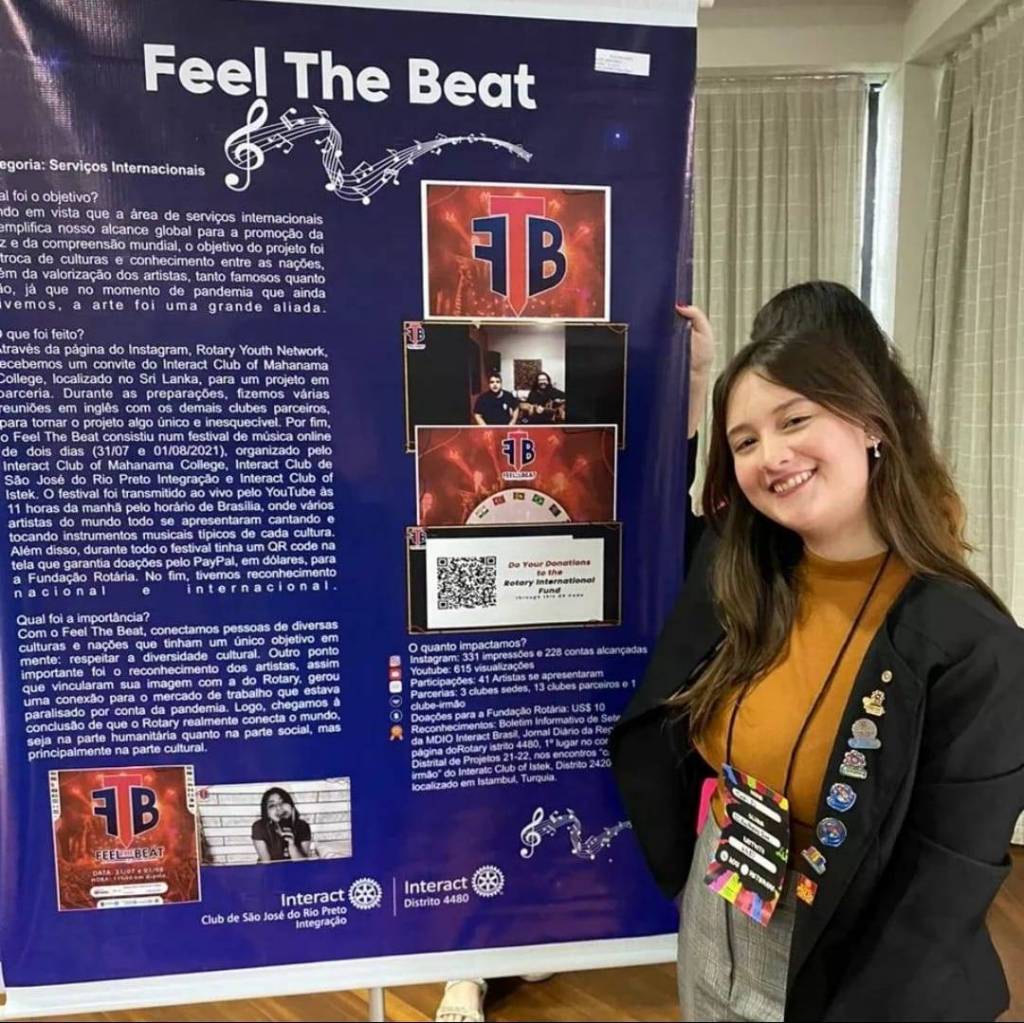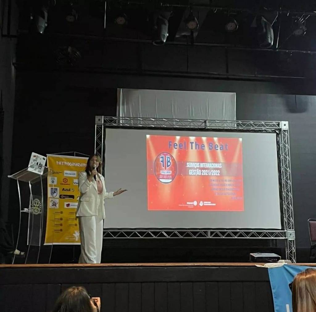 Além disso, nossa associada @tintijulia representou o clube no Concurso Nacional de Projetos, levando o 1° lugar na categoria "Serviços Internacionais" com o projeto "FEEL THE BEAT". Estamos muito orgulhosos! 🥰🎶🏆
