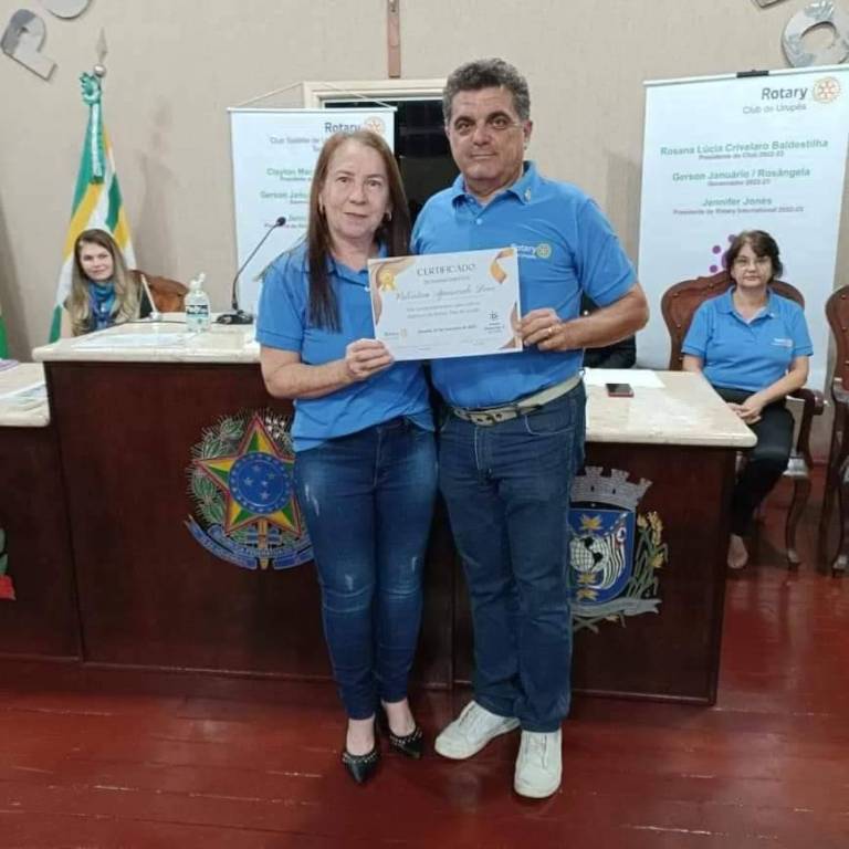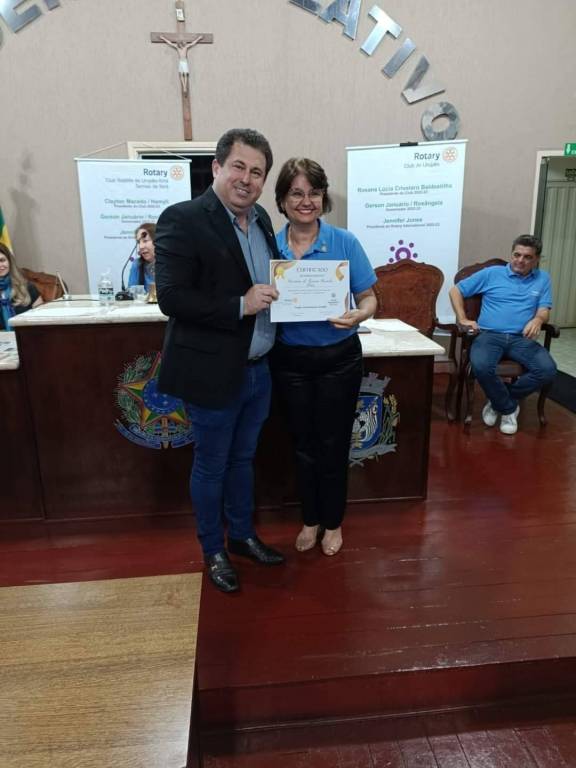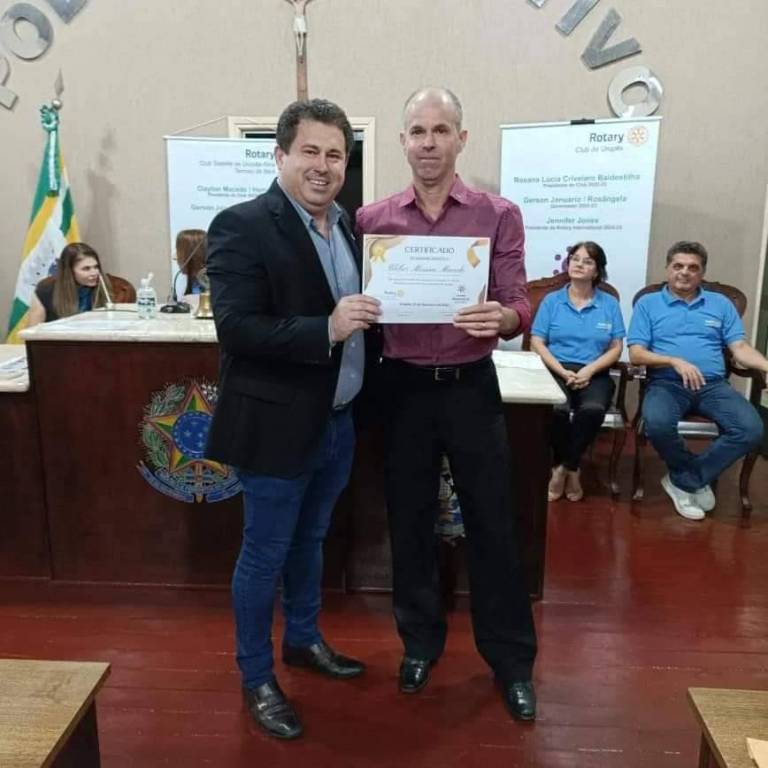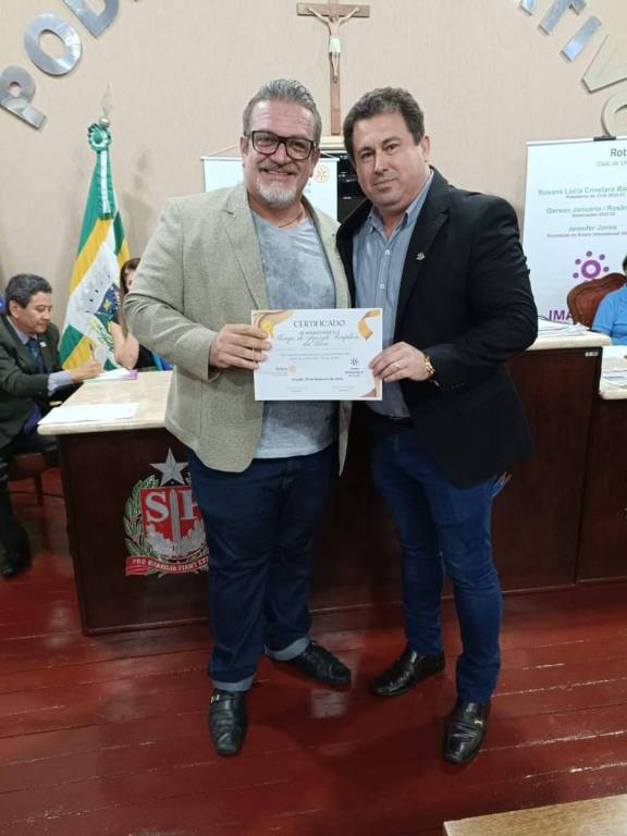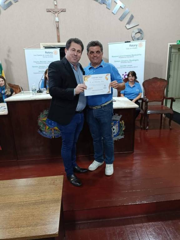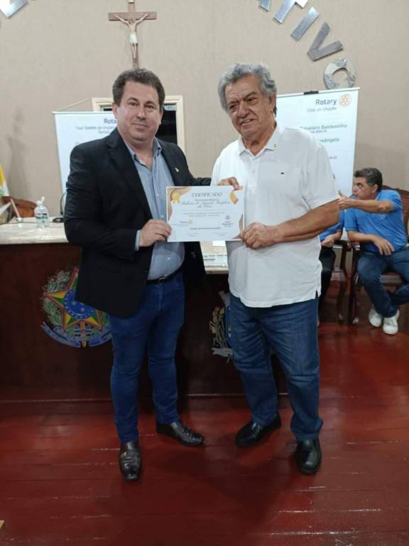 Foram homenageados companheiros dos dois clubes, pela dedicação com seus clubes e pelo comprometimento com os objetivos do ๐‘๐Ž๐“๐€๐‘๐˜, bem como pessoa da cidade que colabora com os projetos do clube de Urupês, Sr. JOÃO DAMIM (empresário) e Presidente da ACIUR – Associação Comercial e Empresarial de Urupês.