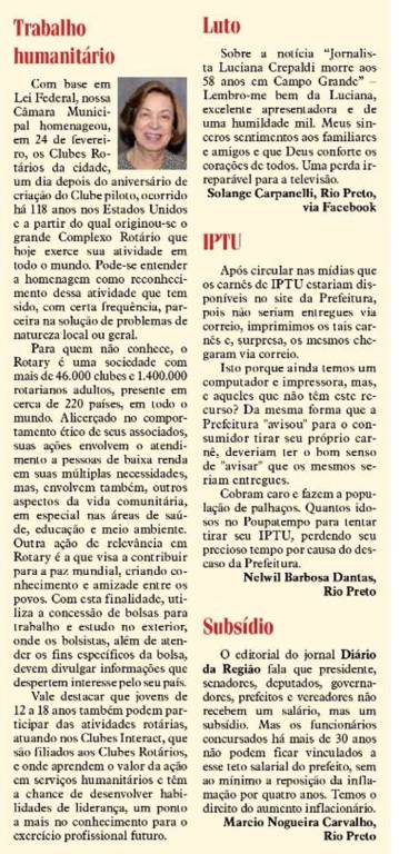 Matéria de nossa Companheira Hermione Bicudo, no Jornal Diário da Região de São José do Rio Preto do dia 02 de março de 2023.