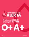 O estoque de sangue do Hemocentro está em nível crítico para as  tipagens sanguíneas O+ e A+. Compartilhem esse informativo para o maior número de pessoas que puderem. O atendimento é das 7h às 13h, todos os dias, por agendamento ou ordem de chegada. Maiores informações entrar em contato pelo telefone 17 3201 5151 ou WhatsApp 17 99623 9985.