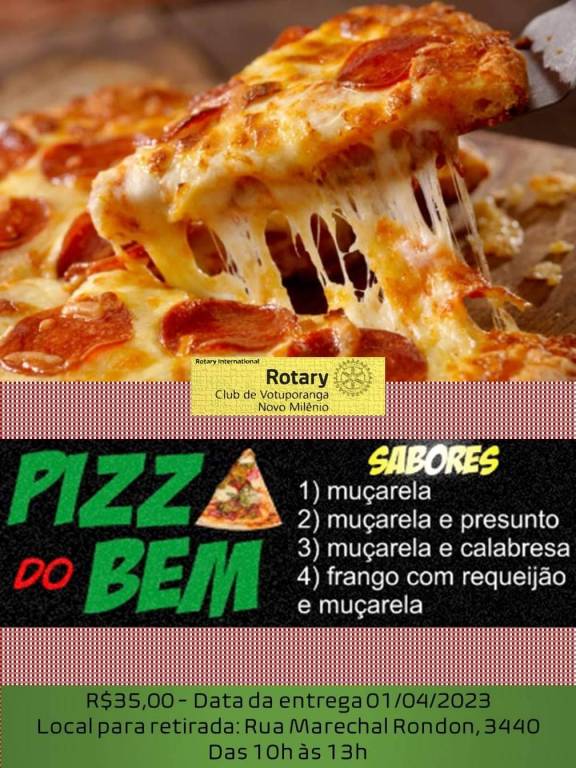 Sucesso total a promoção das pizzas hoje no Rotary Club de Votuporanga Novo Milênio. Obrigado a todos que colaboraram.