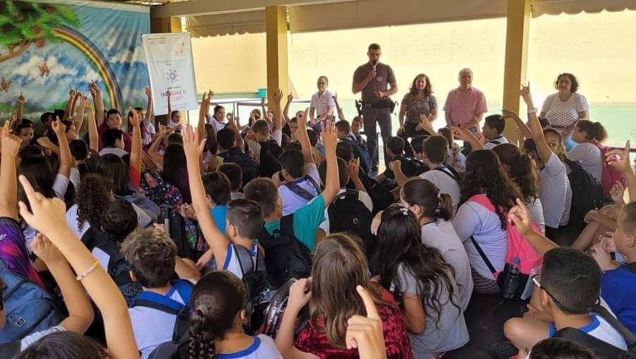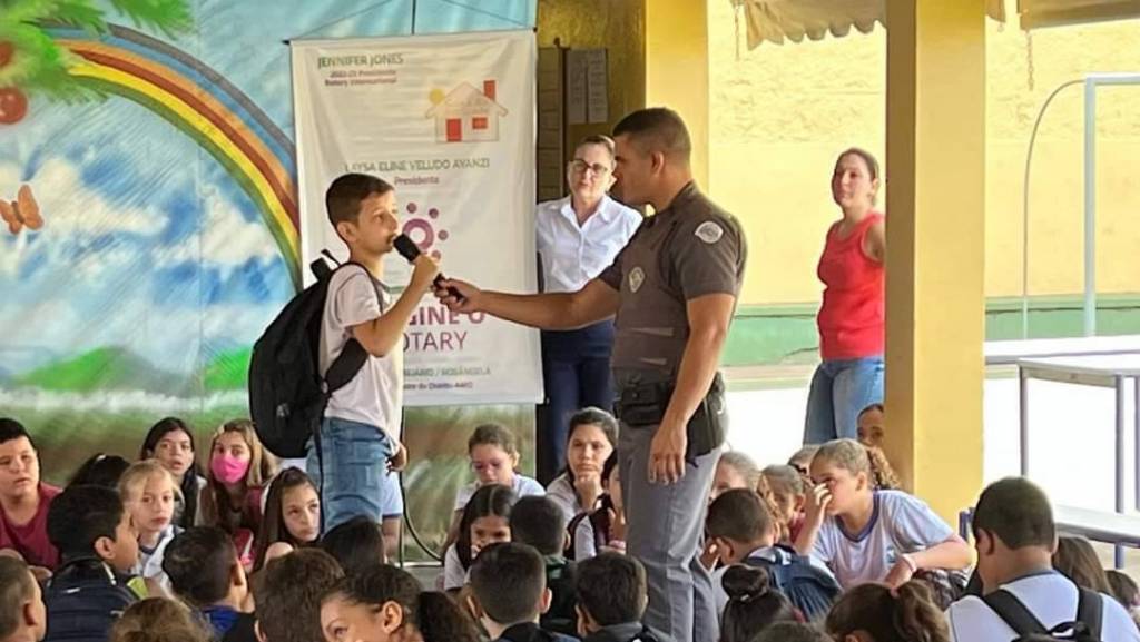 A Família Rotária de Itápolis esteve presente hoje, 19.04.23, na EE Prof. Júlio Ascânio Mallet em apoio aos Policiais Militares, Soldado Claro e Soldado Ricardo, que realizaram um bate papo com os alunos sobre benefícios e malefícios das redes sociais; disseminação de fake news - o que tem assustado muito os pais e alunos nos últimos dias; as falsas comunicações de crimes e as várias medidas preventivas da PM. O Soldado PM Claro, que é faixa preta e professor de jiu-jítsu, também explicou aos jovens sobre atitudes a serem tomadas no caso de uma ocorrência de gravidade no ambiente escolar. A Família Rotária agradece a escola Mallet e ao Capitão Lúdio Veludo pela parceria e parabeniza pelo excelente trabalho que estão exercendo!