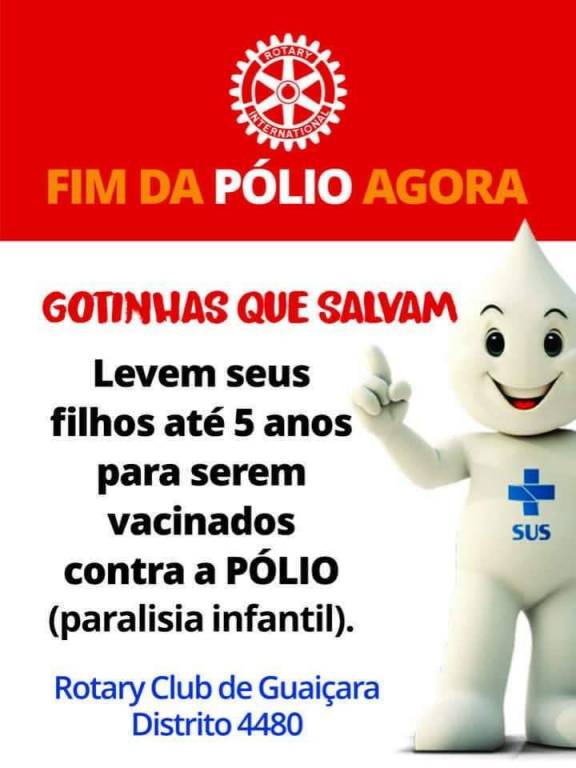 Texto do Rotary Club de Guaiçara: Senhores pais, sejam responsáveis e não deixem de levar seus filhos até 5 anos para tomar as 2 gotinhas que salvam.