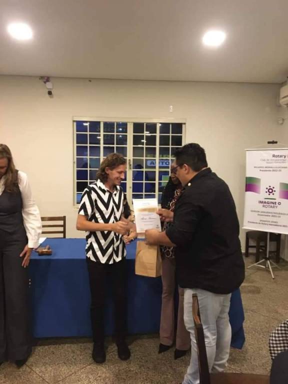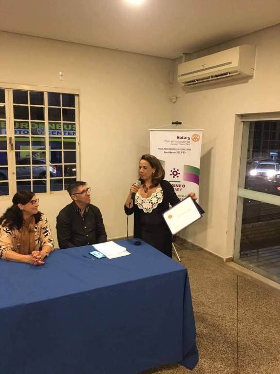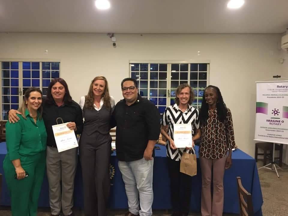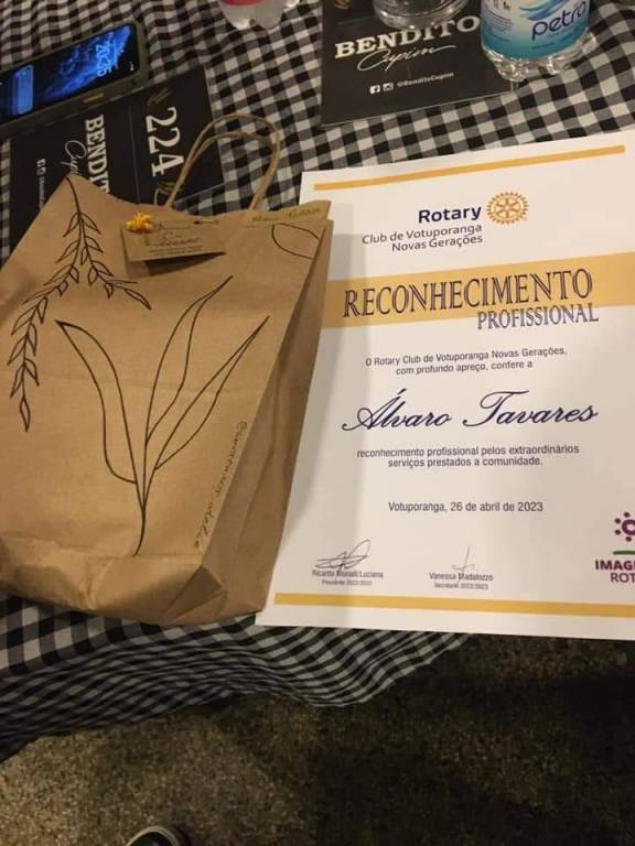 Noite de quarta feira (26/04) muito agradável e de dever cumprido . Na cerimônia do Reconhecimento Profissional homenageamos 2 pessoas de suma importância pra nossa cidade : Álvaro Rovares - Publicitário e Ator e Álvaro Augusto Tavares - Decorador e Paisagista ambos com histórico de trabalhos voluntários relevantes pra nossa sociedade. Na ocasião comp Pres. Ricardo Morialli na presença do comp. Gov. eleito para a gestão 2023-24 José Luíz Pavam e esposa comp. Rita agraciou a comp. e próxima pres. Mara Duarte Paulão com um título Paul Harris por todo trabalho desenvolvido por ela dentro de nosso clube.