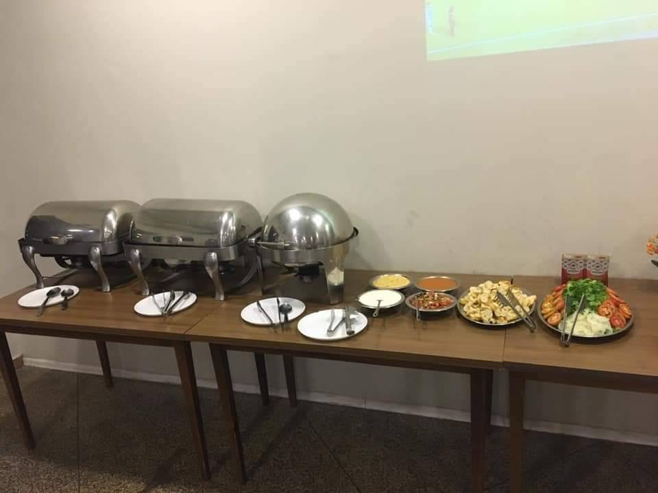 Após a cerimônia protocolar os presentes se confraternizaram com um delicioso jantar .