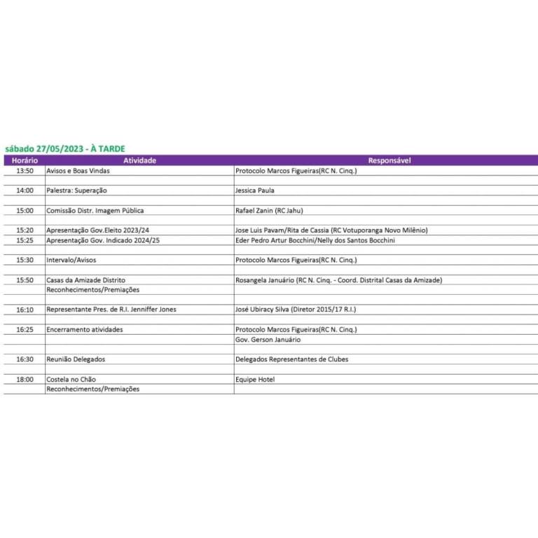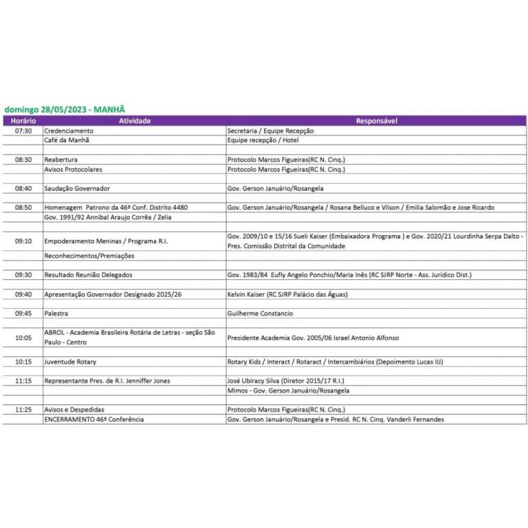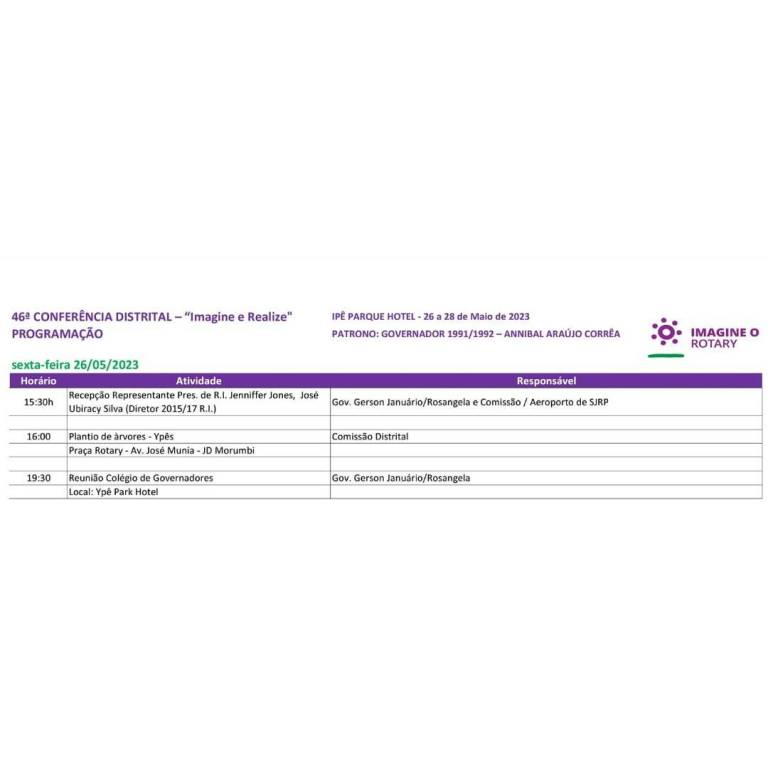 Programação Oficial da 46ª Conferência Distrital – “Imagine e Realize".