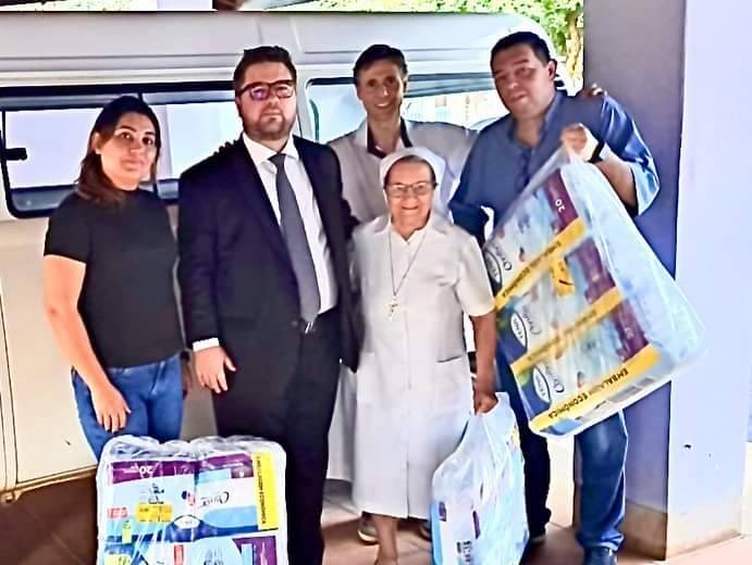 Rotary de Bariri doa pacotes de fralda para o Lar Vicentino.