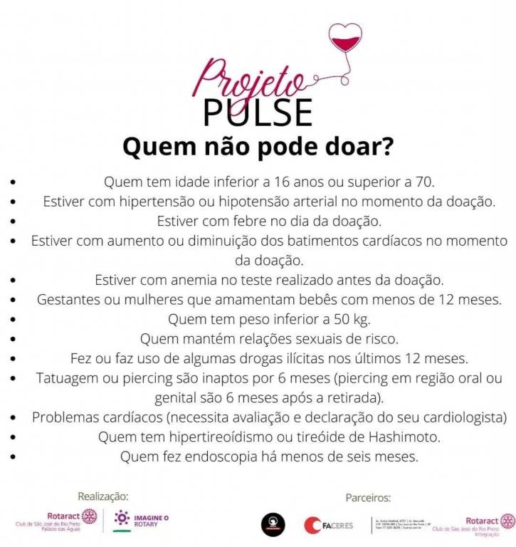 Texto do Interact Club de São José do Rio Preto Integração: Seja um herói! Doe sangue e ajude a salvar vidas.