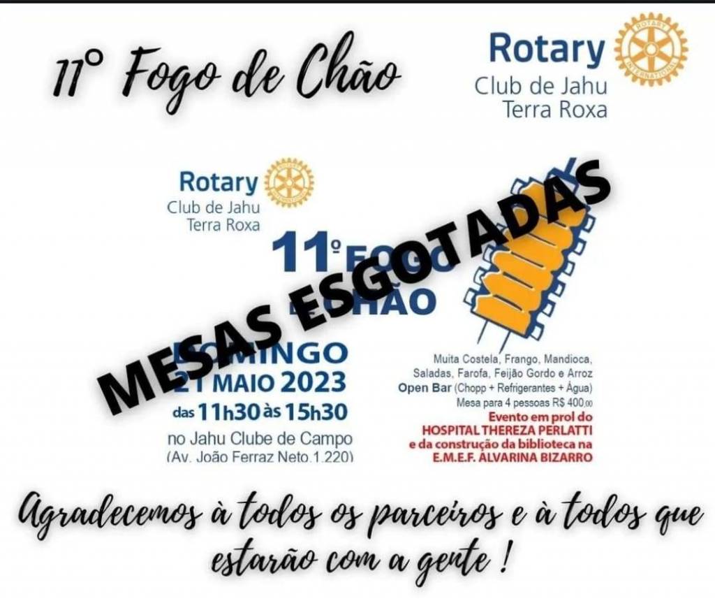 Texto do Rotary Club de Jahu Terra Roxa: MESAS ESGOTADAS 🙏😀