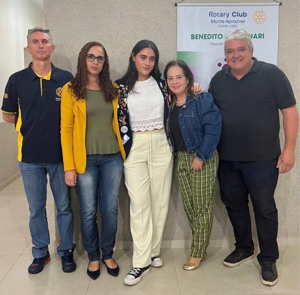 A intercambista mexicana Camila faz sua apresentação e despedida no Rotary Club de Monte Aprazível.