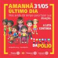INFORMAÇÃO IMPORTANTE: O Brasil conta com os clubes do Rotary, Rotaract e Interact para a nossa Campanha Heróis da Pólio 2023. O prazo dessa importante iniciativa de doações para o combate à paralisia infantil se encerra neste 31 de maio. Ainda está em tempo para você participar. A meta da organização mundial é arrecadar cerca de US$ 30 mil que serão empregados na compra de vacinas contra a pólio.