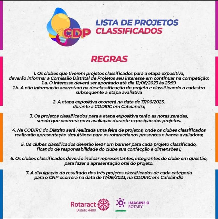 Lista de Projetos Classificados no CDP.
