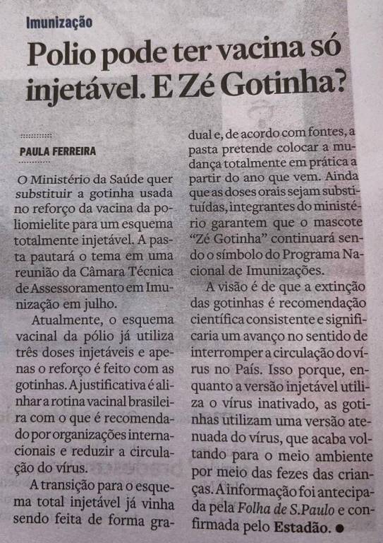 Polio pode ter vacina só injetável. E Zé Gotinha?