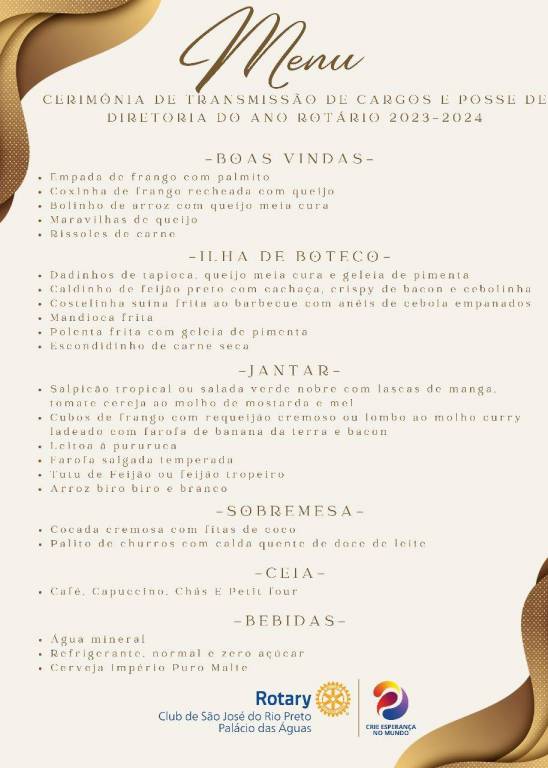 Convite de Posse do Rotary Club de São José do Rio Preto Palácio das Águas