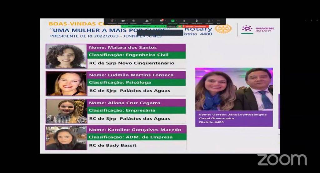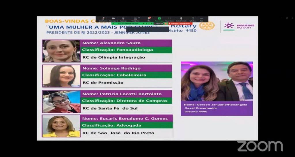 A COORDENAÇÃO DO ROTARY DO BRASIL, através de seus Coordenadores: JOSÉ CLAUDINEY ROCCO (Região 31) e VERA BERTAGNOLI (Região 29) realizaram através do Zoom