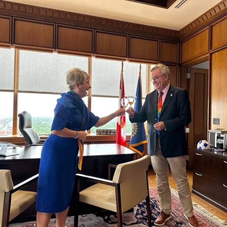 E que melhor maneira de tocar num termo escocês do que um "saúde" com uísque? Bem-vindo, presidente Gordon McInally!🥂