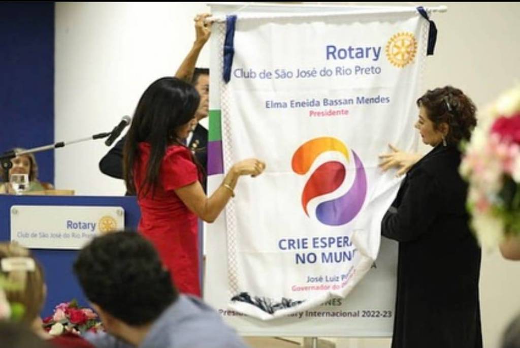 Com muita alegria e energia, a nova Presidente 2023/24 Elma Eneida Bassan Mendes recebeu a Presidência sob o lema do ROTARY Internacional “ Crie Esperança no Mundo”.