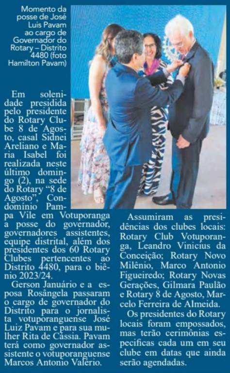 Diário de Votuporanga elabora matéria sobre a Posse do Governador e sua Equipe Distrital