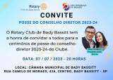 O Rotary Club de Bady Bassitt tem a honra de convidar a todos para a cerimônia de posse do Conselho Diretor 2023-2024 do clube.