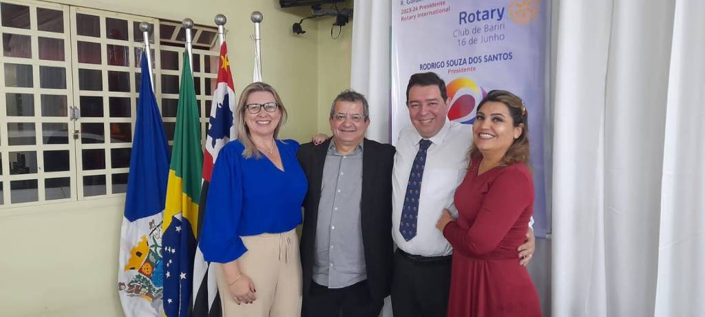 O Rotary Club de Bariri 16 de Junho se reuniu na noite de ontem, em sessão solene, para transmissão do cargo de presidente e posse do conselho diretor do novo ano rotário. A solenidade foi marcada por uma breve apresentação das realizações do ano presidido por César Augusto Carra, além das homenagens à Egydio Carlos Cassiola, pelos relevantes serviços prestados à comunidade, e José Antonio Rodrigues com um título Paul Harris. Em seguida, de maneira simbólica, César passou às mãos de Rodrigo Souza dos Santos o sino e o martelo, a serem utilizados para a presidência no ano 2023-2024, cujo lema "Crie esperança no mundo" será o grande norteador dos projetos. Após os discursos da governadora assistente Vanderleia, do vice-prefeito Fernando Foloni, e do presidente da Câmara dos Vereadores Airton Pegoraro, o novo presidente encerrou a sessão e todos puderam se confraternizar com o jantar servido pela Churrascaria Parraga ao som de Mariana Prearo.