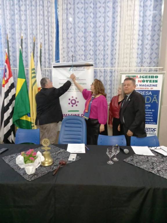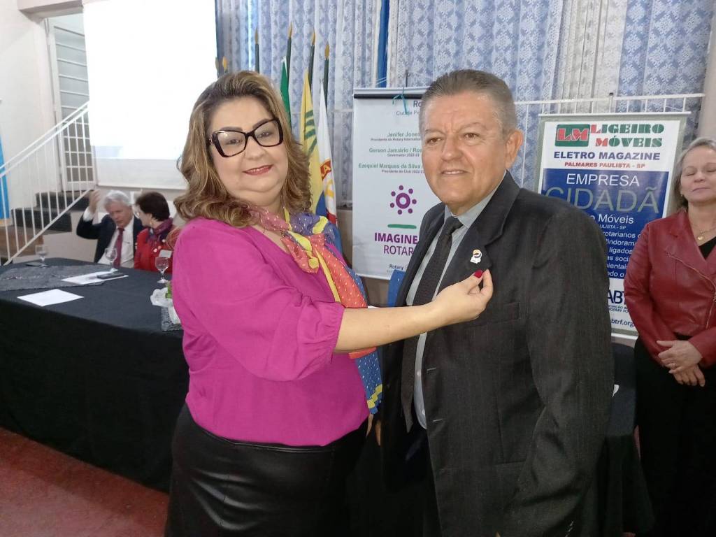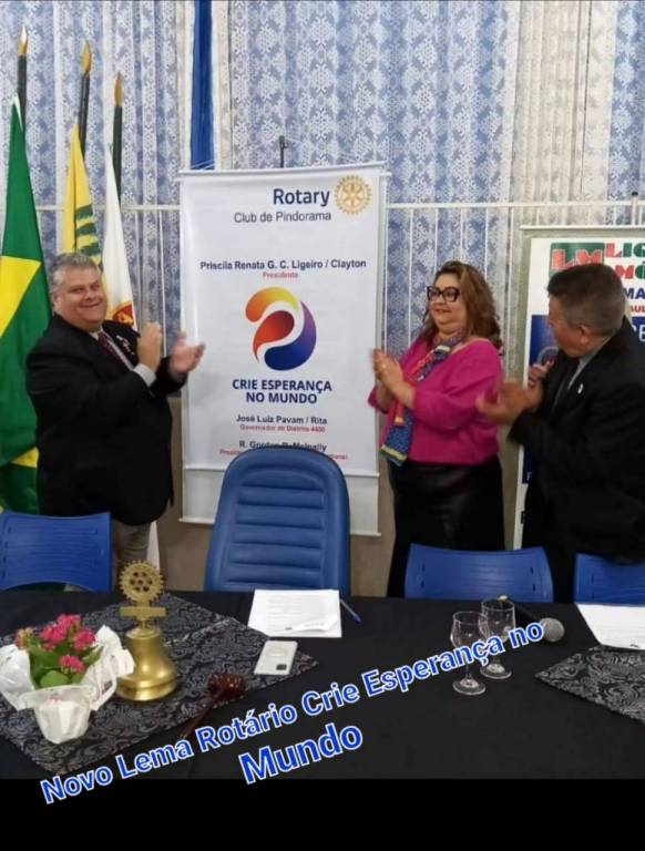 O Pres. Ezequiel Marques transmitiu o cargo para companheira Priscila Renata Golbis da Cunha Ligeiro, que assume liderança do clube para gestão 2023-2024, juntamente com seu cônjuge, companheiro Aldecir Clayton Ligeiro (Gov. 2021-2022) sob lema "Crie Esperanças no Mundo.