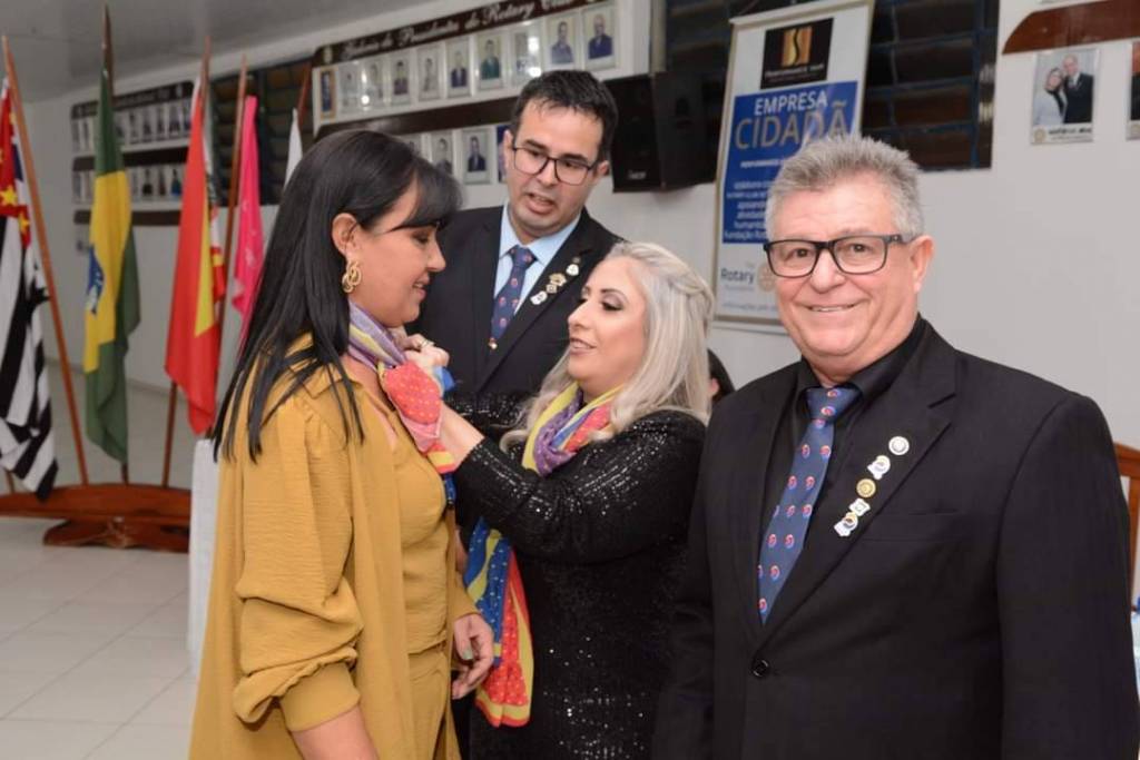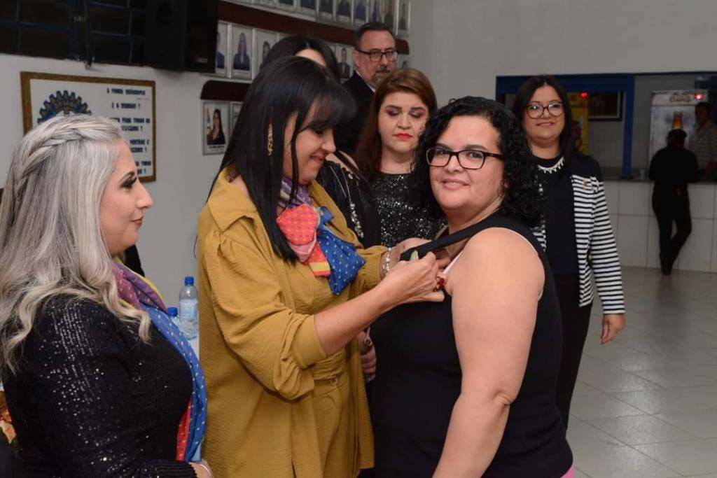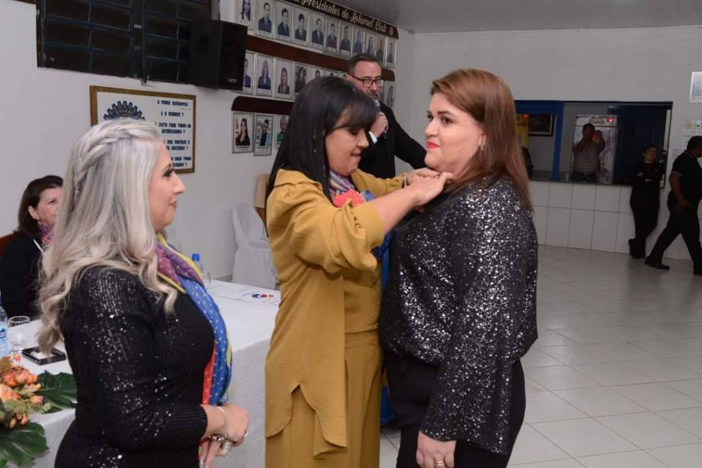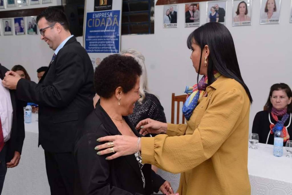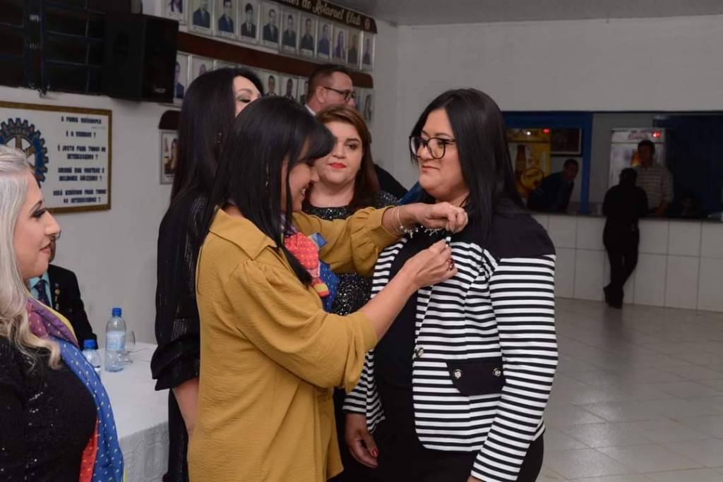 A Pres. da Casa Amizade de General Salgado, Edineia tomou posse pelas mãos da esposa do Pres. do Rotary, a companheira Ilta. Em seguida, a Pres. deu posse a duas novas damas da casa da amizade e todo o seu conselho.