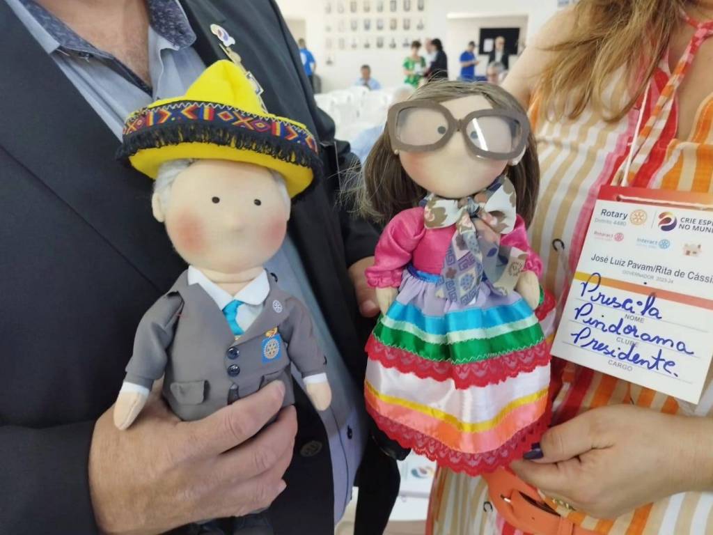 Durante o Seminário da Fundação Rotária, realizado em São José do Rio Preto no dia 6 de agosto, os mascotes Aldeco e Pri foram entregues ao Gov. Aldecir Clayton Ligeiro e sua esposa Priscila, atual Pres. do Rotary Club de Pindorama.