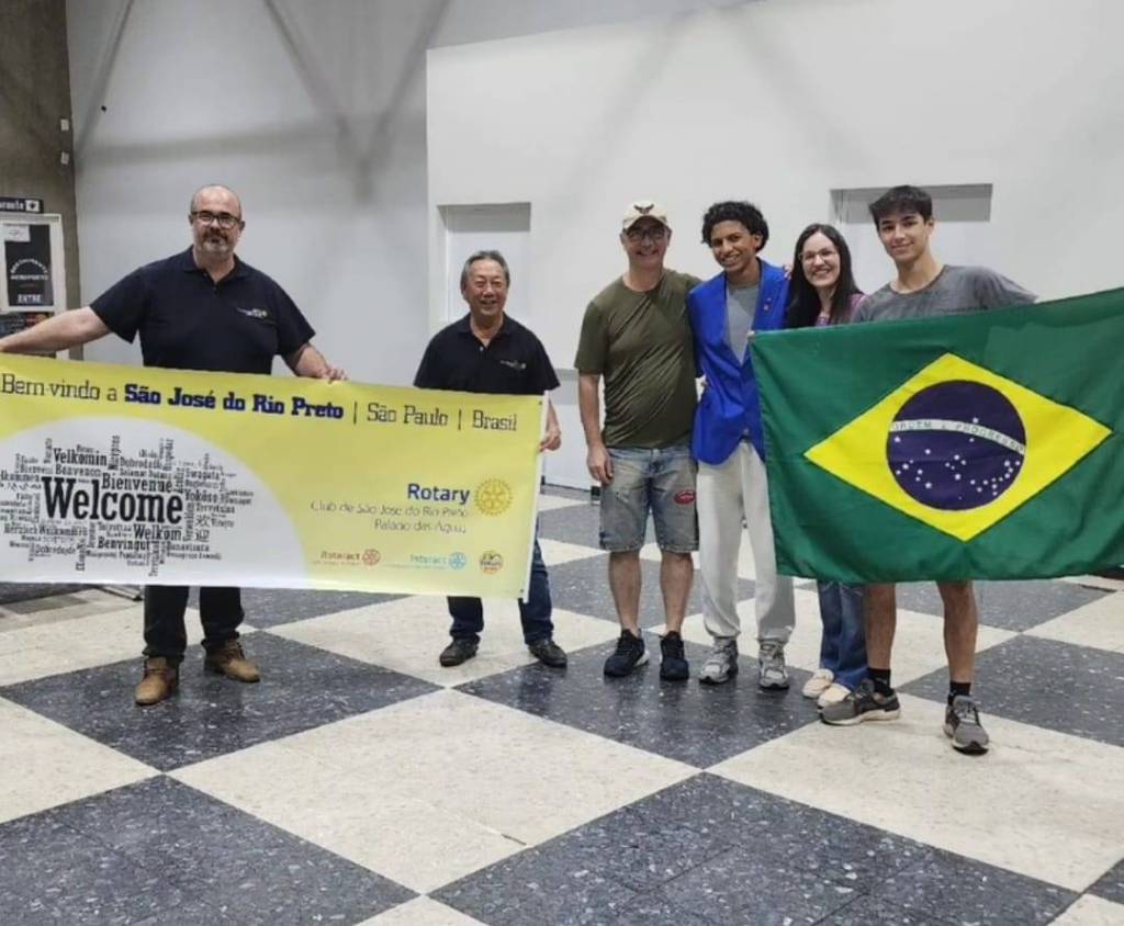 Acabou de chegar nosso querido jovem Francês Adam, sendo recepcionado pela família hospedeira e os rotarianos do Rotary Club de São José do Rio Preto-Palácio das Águas.