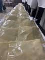 4 homens (2 camiseta preta e 2 camiseta verde)e 1 mulher (blusa fundo rosa claro estampada), todos de touca descartáveis na cabeça.
