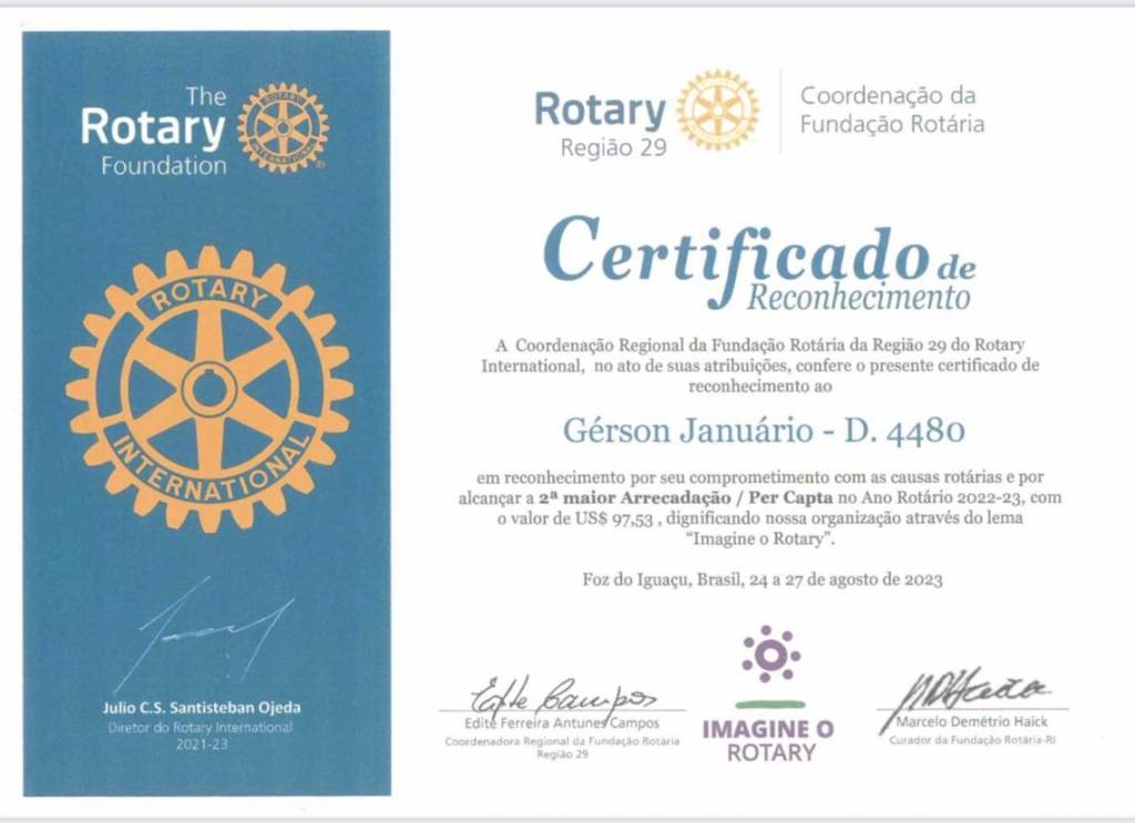 4) Segundo maior arrecadação/Per Capita no Ano Rotário 2022/2023;