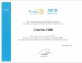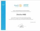 Audiodescrição: No card a identificação de um certificado, com fundo branco, e descrição acima do lado esquerdo The Rotary Fundation e ao lado a roda rotária na cor amarela, do lado direito, descrito ABTRF - ASSOCIAÇÃO BRASILEIRA DA THE ROTARY FOUNDATION. Ambos escritos em azul claro.