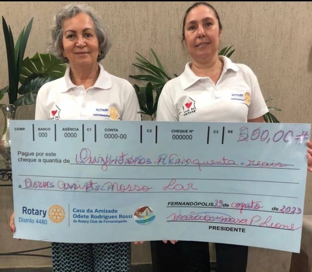A Casa da Amizade do Rotary Club de Fernandópolis, presidida pela Dama @marcialeonee , mais uma vez se faz presente, fazendo a doação em dinheiro para a confecção de 600 convites do evento anual do Orfanato (Jantar Dançante), Associação Assistencial Nosso Lar de Fernandópolis.