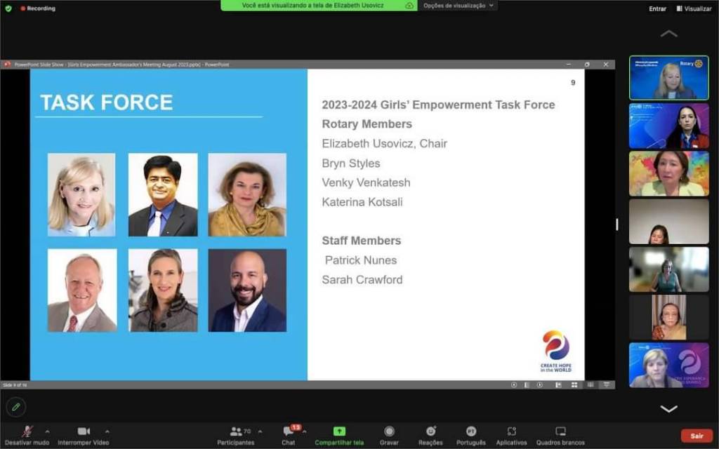 Força Tarefa do Empoderamento de Meninas do Rotary International em Reunião com as Embaixadoras e Embaixadoras Assistentes de todas as Zonas Rotárias, para falar dos avanços ocorridos nestes 2 anos em ação e o quanto podemos fazer para seguir dando vida a tão importante Iniciativa Presidencial.