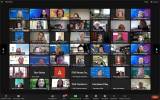 Audiodescrição: na foto a identificação de uma tela de computador, no centro acima um homem grisalho, usando óculos, sorridente e de camisa clara, ao fundo, identifica-se o que parece ser um escritório, com várias prateleiras e objetos como livros, troféus, enfeites e porta retratos. Abaixo da imagem, 5 telinhas abertas com imagens de mulheres e homens, parecem estar em video chamada por aplicativo.