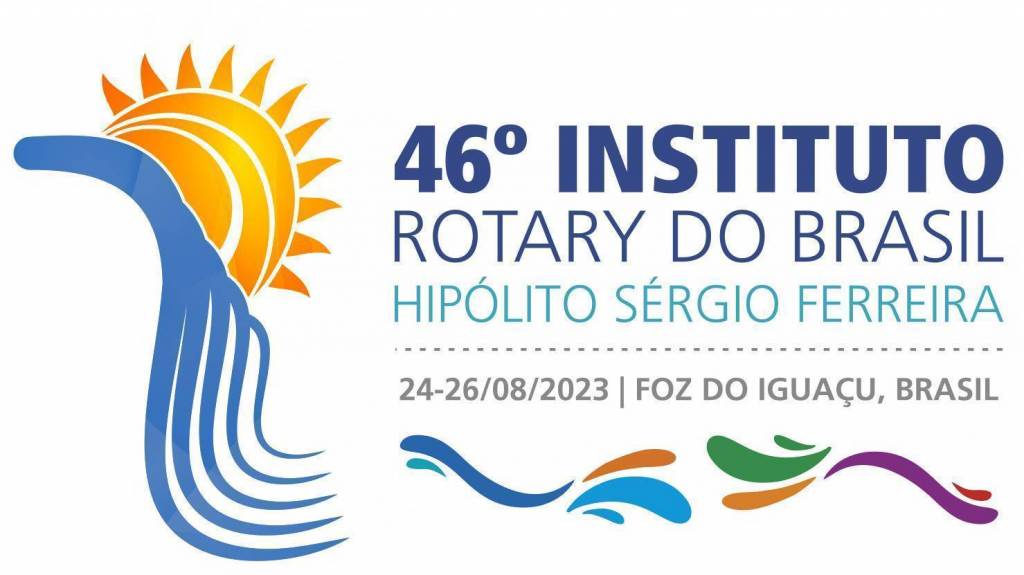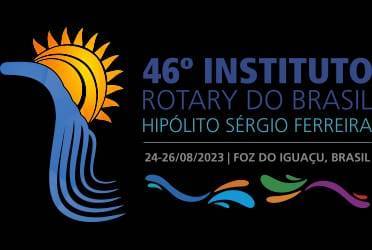 Lado esquerdo um slide grande, branco com o símbolo e os dizeres: do 46 Instituto Rotary do Brasil.