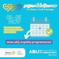Card Azul claro. no canto superior esquerdo há 3 corações entrelaçados na horizontal com as cores mudando de amarelo, verde e azul escuro em degradê. No canto superior direito estão escrito em inglês Passion + Dedication + care for Rotary Youth Exchange que significam paixão + dedicação + cuidado pelo Programa de Intercâmbio de Jovens do Rotary. No centro do lado esquerdo estão as datas de 02 a 05 de novembro do lado de uma folha de calendário indicando o link www.abij.org/abij-programacao/ . Abaixo o logo do programa de intercâmbio do Rotary, seguido do logo da 42ª Conferência da ABIJ - Associação Brasileira de Intercâmbio de Jovens - que ocorrerá em Ribeirão Preto, estado de São Paulo.