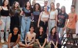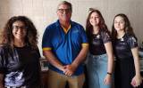 Logo atrás, em pé: a jovem representante do Interact - Camila, a Chairwoman do Interact - Roseli em seguida 3 jovens meninas.