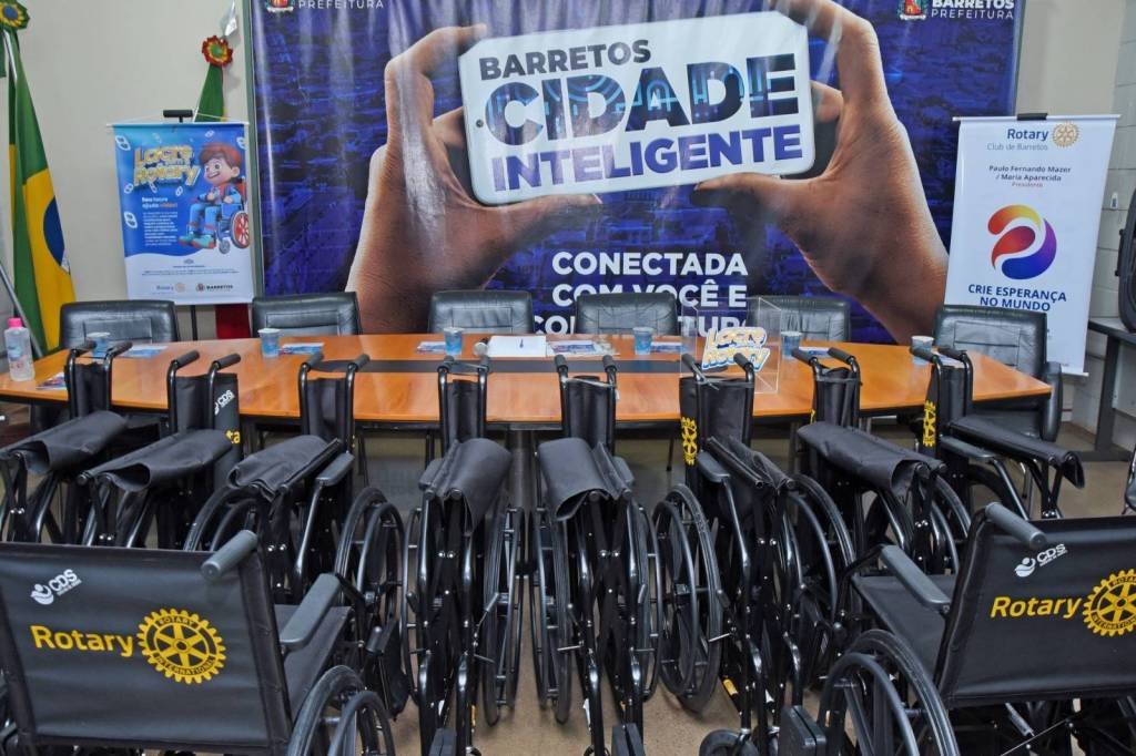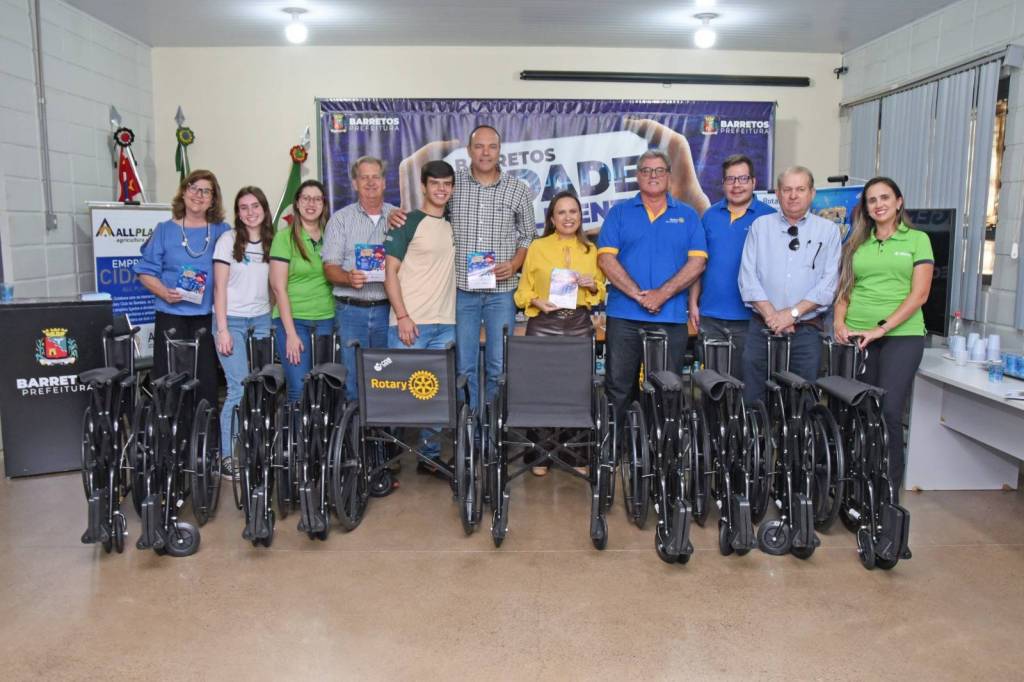 O Rotary Club Barretos entregou nesta sexta-feira, 1º, 10 cadeiras de rodas à Prefeitura da Estância de Barretos. Na ocasião, foi lançada a parceria na Campanha "Lacre com o Rotary”, que consiste na coleta de lacres de latas de alumínio, os quais podem ser trocados por cadeiras de rodas e aparelhos auxiliares de locomoção em parceria com o Rotary Club de Barretos.