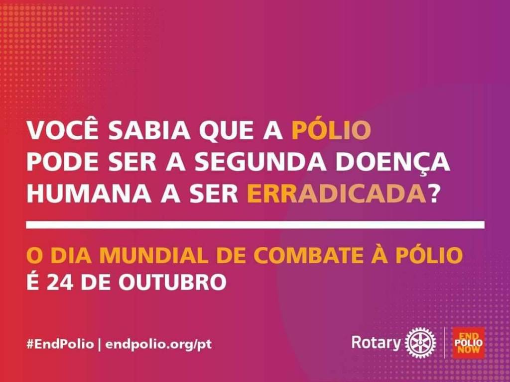 Na parte central uma moldura no mesmo tom, onde do lado esquerdo em amarelo: o dia mundial de combate à pólio.