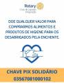 Em azul letras destacadas: Doe qualquer valor para comprarmos alimentos e produtos de higiene para os desabrigados pela enchente.