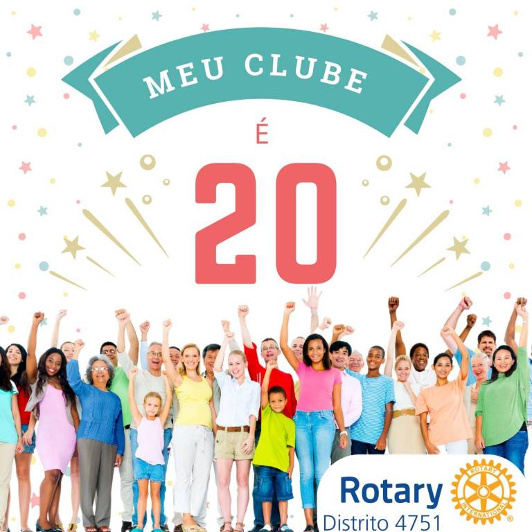 No Desenvolvimento de Rotary (o antigo DQA) fomos desafiados a alcançarmos mais de 60.000 associados no Brasil, até o início do período 2025-26. Começamos a Campanha “Meu Clube é Vinte!” para que nenhum dos nossos Rotary Clubs tenha menos de 20 associados até o final do período 2023-24. Vamos trabalhar para alcançarmos esse número!!! O mês de agosto no calendário rotário é o mês dedicado ao quadro associativo, mas nós sabemos que a nossa preocupação em aumentarmos, engajarmos e mantermos o nosso quadro associativo não se resume a um único mês: é um trabalho constante e contínuo, porque a nossa roda rotária não para! Então, vamos ser 20???