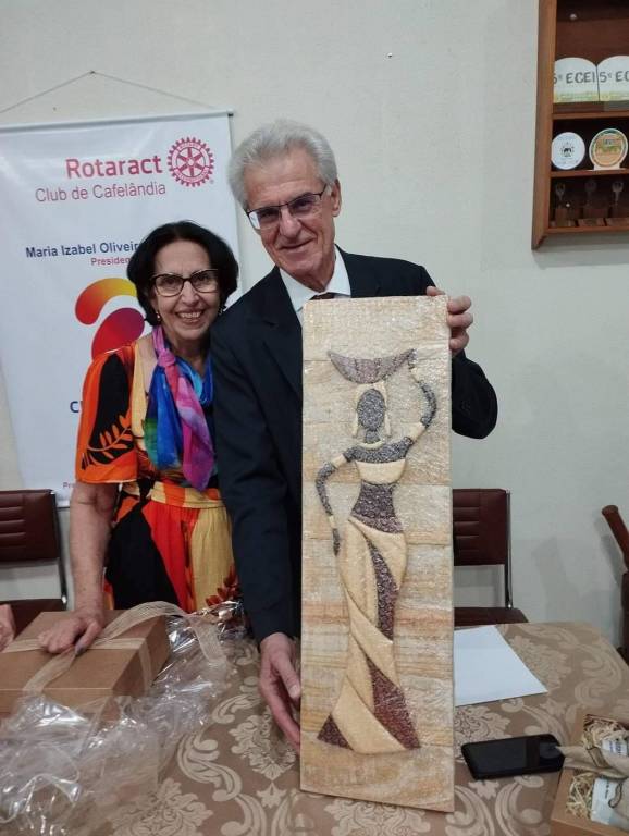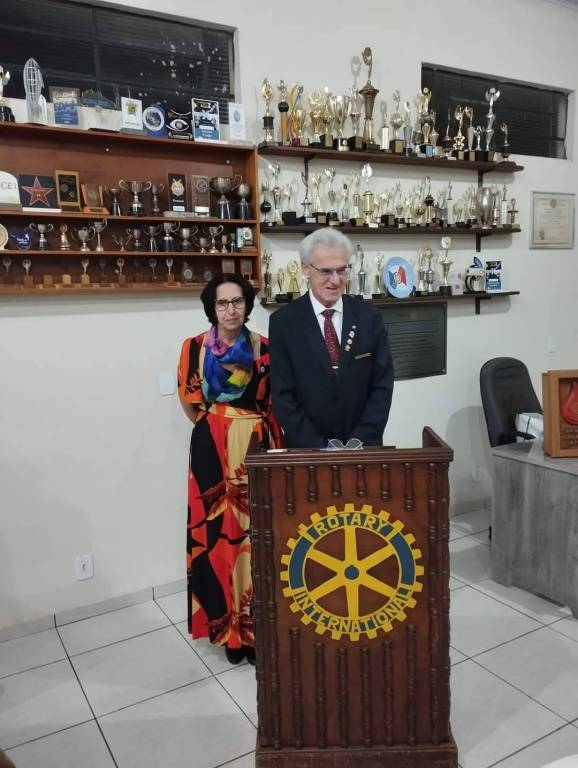 O casal foi recepcionado no marco rotário da cidade pelo Pres. Edson Parra e sua esposa Roseline, pela companheira e Gov. Assistente Maria de Lourdes e demais companheiros de Club.