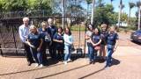 Lado esquerdo: 4 mulheres, seguindo o marco rotário, casal Gov. Rita e Pavam, em seguida lado direito da imagem 2 mulheres e 2 homens.