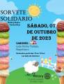 No centro superior um sol , e lado esquerdo em preto: sorvete solidário - Rotary Club e Centro Dias.