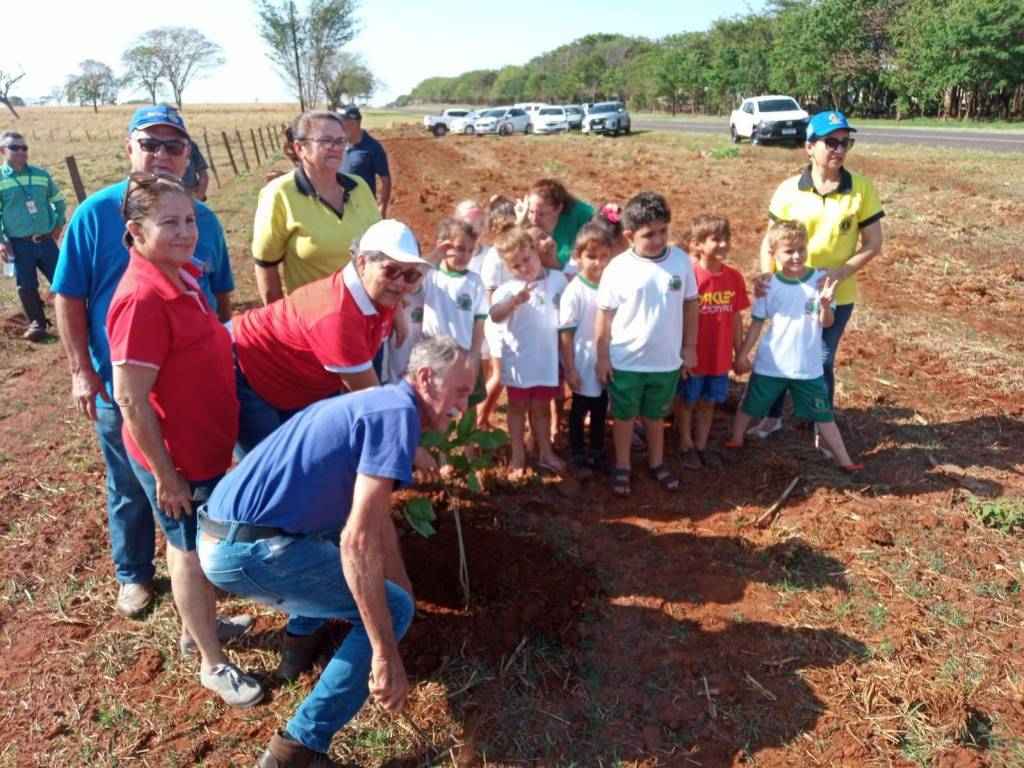 O Rotary Club de Ouroeste, em parceria com a Secretária Municipal do Meio Ambiente, realizou o plantio de 42 mudas de ipê branco na margem da rodoviária. A ação contou com a presença da Pré Escola do município.
