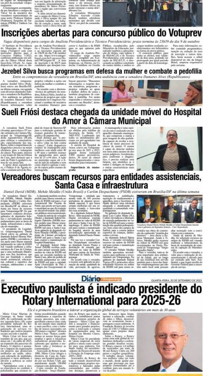Página de um jornal: Diário de Votuporanga do dia 20 de Setembro de 2023, escrito em preto na página branca.