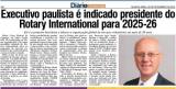 Logo abaixo em outra matéria de destaque: Executivo Paulista é Indicado Presidente do Rotary Internacional para 2025/26.