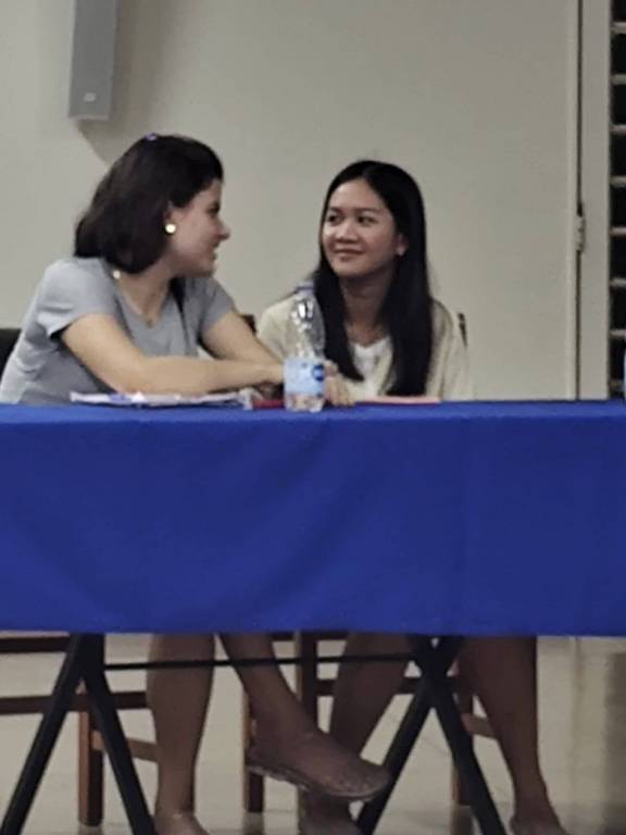 Da esquerda para a direita: governadora assistente Rosana Beluco (blusa branca com detalhes preto, calça jeans) com o braço cruzado esticados a frente do seu corpo.