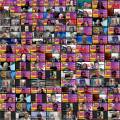 Uma grande tela de computador com muitas divisões onde pessoas estão em uma reunião on line. Pessoas de ambos os sexos e diferentes idades.